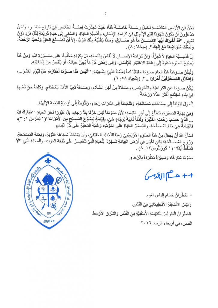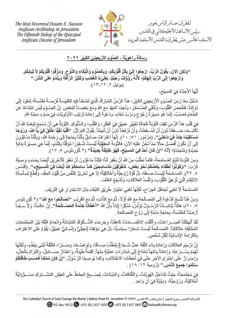 رِسَالَة راعَوِيَّة – الصَّوْمِ الأرْبعِينيِّ الكَبِيْرِ 2026