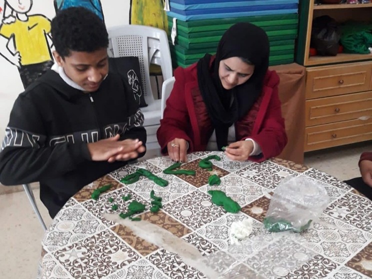 In het Jofeh-centrum werd op een speelse manier met de lessen gestart. De eerste activiteit was met boetseerklei een tekst maken. “Hartelijk welkom in het tweede seizoen” staat er in het Arabisch.